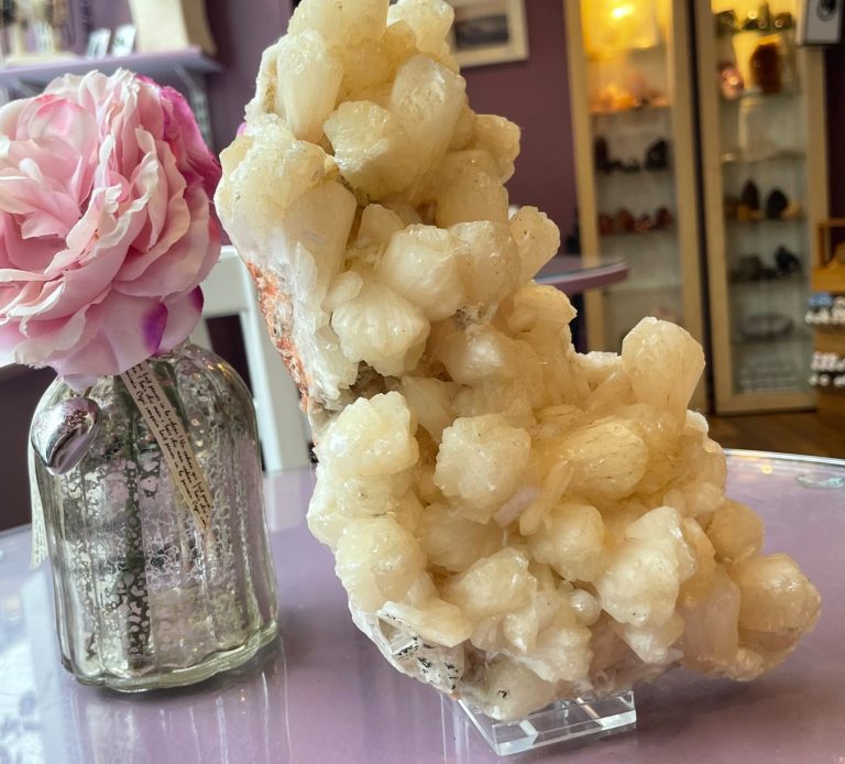 Stilbite supports emotional healing and transformation by promoting self-acceptance, forgiveness, and the release of past trauma. Its gentle energy brings a sense of inner peace, quiets a busy mind, and helps alleviate stress and anxiety. Stilbite crystal enhances intuition, spiritual awareness, and a connection with higher realms, facilitating spiritual growth, Stilbite helps to clear mental clutter, providing clarity for decision-making and aligning one with their goals